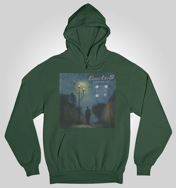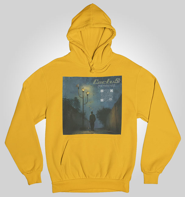 বাংলা রকের ভক্ত হলে এই Hoodie আপনার জন্য। Cactus -এর “শেষ পাওয়া খবরে” অ্যালবামই এই Hoodie USP। পরুন আর হারিয়ে যান স্বপ্ন, স্মৃতি আর প্রেমে ভরা নস্টালজিয়ায়।
