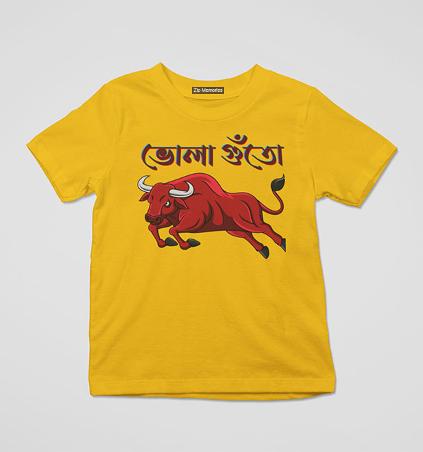 ‘ভোলা গুঁতো!’ ভাবলেই যেন ভানু বন্দ্যোপাধ্যায়ের গলাটা মাথার মধ্যে ভেসে আসে। যমালয়ে জীবন্ত মানুষ সিনেমার সেই মজার সংলাপ এবার Bangla Quote T-Shirt-এ। একেবারে টাইমলেস কমেডি ভাইব!
