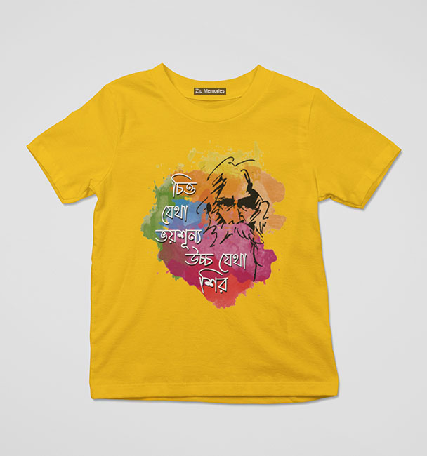 রবি ঠাকুরের iconic লাইন। এমন এক বাক্য যা যুগ-যুগ ধরে মানুষকে নতুন করে ভাবতে শিখিয়েছে। রবীন্দ্রনাথ ঠাকুরের সৃষ্টির অনুরাগী হলে এই Bangla Quote T-Shirt-টি আপনার জন্য।