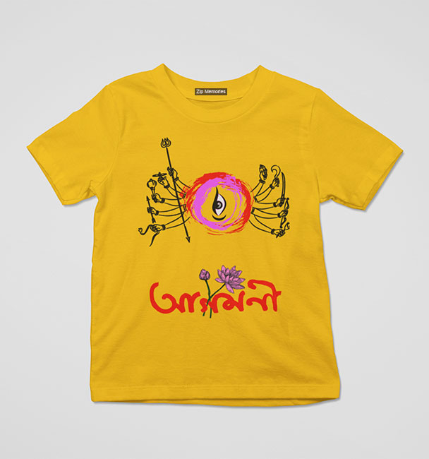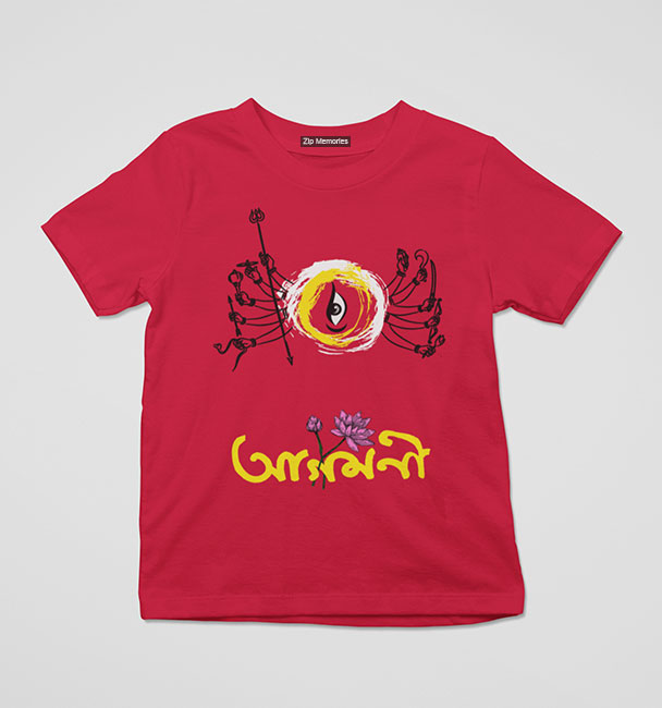 'আগমনী'; মায়ের আসার উচ্ছ্বাস, ঢাকের তালে, ধুনুচি নাচ আর কাঁসরের তালে জমে উঠুক Pujo Vibes! আর্টিস্টিক এই Durga Illustration পাবেন আমাদের এই Custom Bangla T-Shirt-এ।