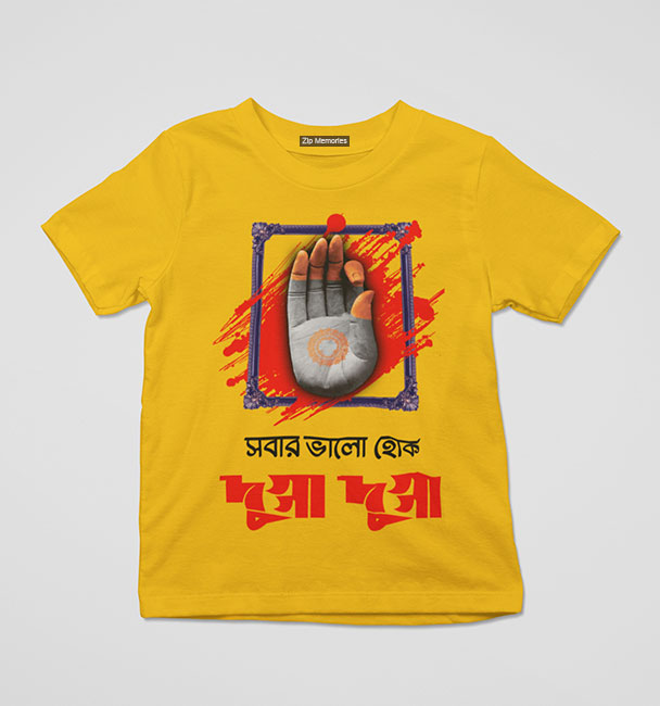 পজিটিভ ভাইবস, সব্বার জন্য। “সবার ভালো হোক, দুগ্গা দুগ্গা” লেখা এই Bangla T-Shirt-এ পুজোর এনার্জি, মায়ের আশীর্বাদ আর প্যান্ডেল-হপিং মুড; সব পাবেন একসঙ্গে। পুজোয় তো বটেই, সারাবছরই পরতে পারবেন।