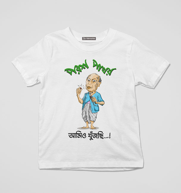 ‘পরশ পাথর’ সিনেমা দেখেননি এমন বাঙালি সিনেমাপ্রেমী বিরল। তুলসী চক্রবর্তীর কালজয়ী অভিনয়, সত্যজিতের রসবোধ আর আদি কলকাতার নস্টালজিয়া; সবই একসঙ্গে পাবেন এই টি-শার্টে। যাঁরা ক্লাসিক বাঙালিয়ানা ভালোবাসেন, তাদের জন্য এটা পারফেক্ট। #ParashPathar #SatyajitRay