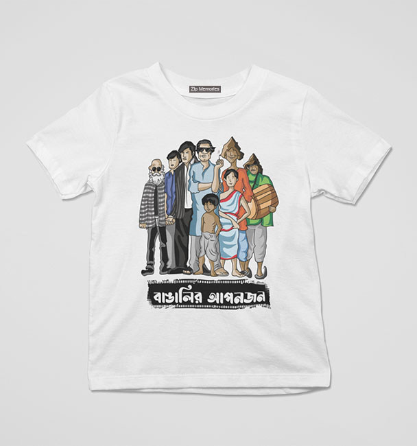 ফেলুদা, তপসে, প্রফেসর শঙ্কু, অপু-দুর্গা, গুপি-বাঘা; সত্যজিতের ফ্যান হলে এই টি-শার্টটা পরতেই হবে। শৈশব, বাঙালিয়ানা আর নস্টালজিয়াকে এক ফ্রেমে ধরুন ‘বাঙালির আপনজন’ টি-শার্টে।
