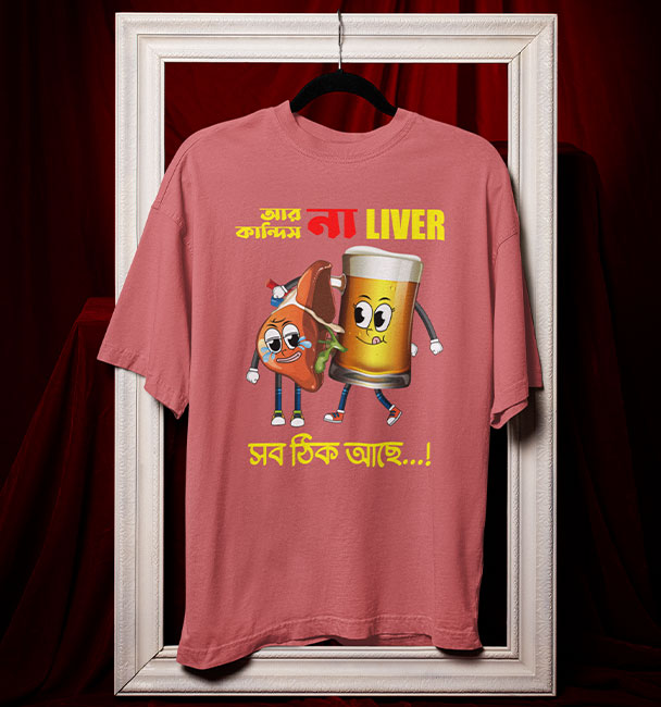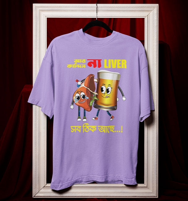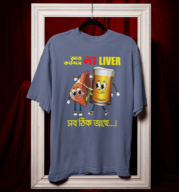 "আর কান্দিস না, লিভার, সব ঠিক আছে!" বিয়ার আর লিভারের Love Hate Relationship এবার Bangla Oversized T-Shirt-এ। আমাদের Beer লাভার বন্ধুদের জন্য পারফেক্ট।