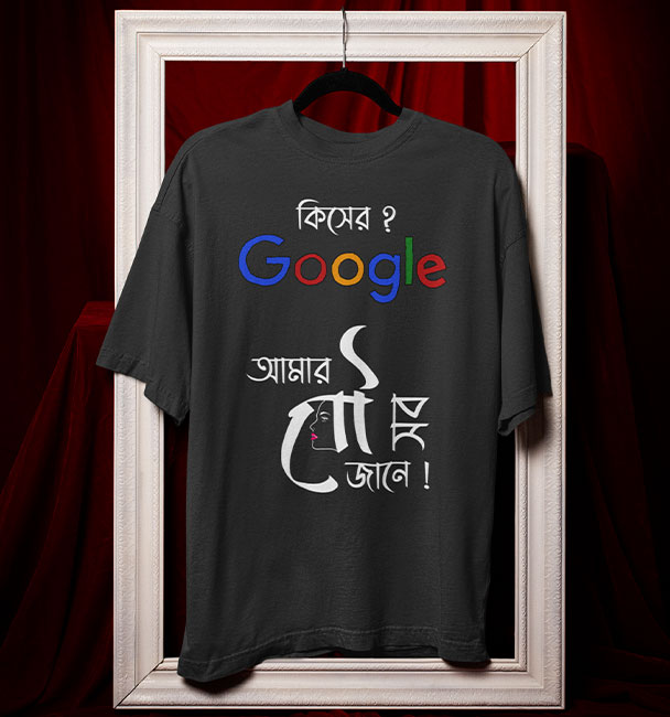 Google? ধুস! আসল ‘সার্চ ইঞ্জিন’ তো ঘরেই আছে; আমার বউ! এই মজার বাংলা quote Oversized টি-শার্ট পরে সবাইকে (আর নিজের বউকেও) বুঝিয়ে দিন যে, জীবনের সব উত্তর আছে ওনার কাছেই। স্টাইলিশ, আরামদায়ক আর সবার নজর কাড়বে, ১০০% গ্যারান্টি!
