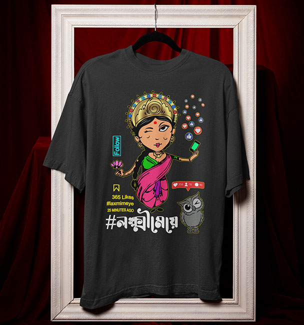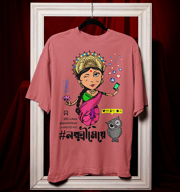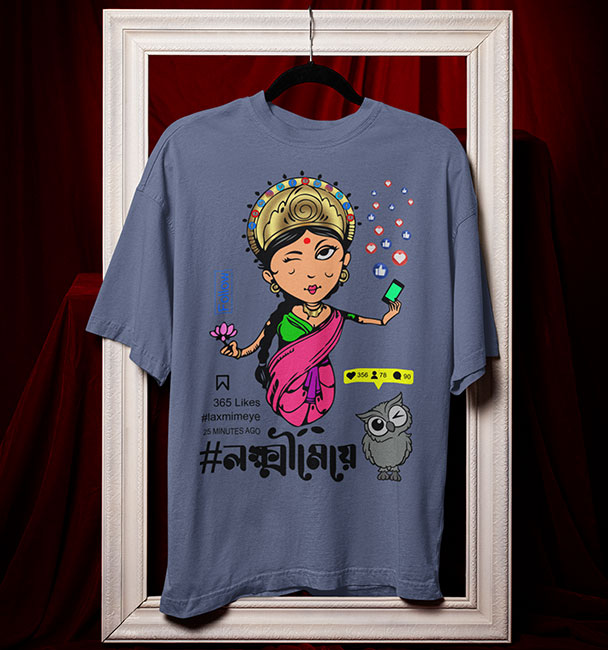 একদম নতুন জেনারেশনের মা লক্ষ্মী! হাতে স্মার্টফোন, ইনস্টা ফিডে ইনফ্লুয়েন্সার ভাইব; এই ‘লক্ষীমেয়ে’ Oversized টি-শার্টটা সেইসব কিউট কুইনদের জন্য, যাঁরা ঐতিহ্য আর ট্রেন্ড দুই-ই সামলান একসঙ্গে! #DesiDiva #Laxmimeye