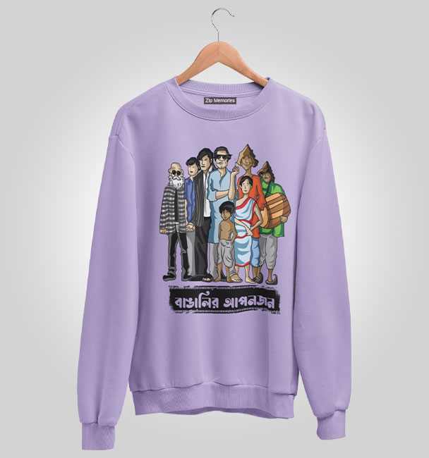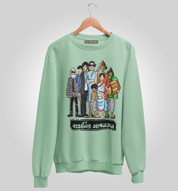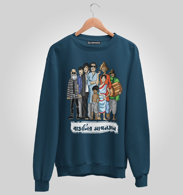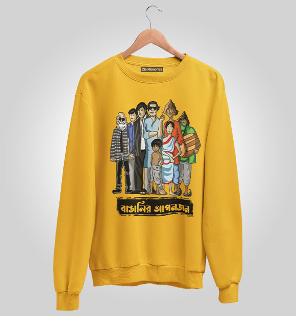 ফেলুদা, তপসে, প্রফেসর শঙ্কু, অপু-দুর্গা, গুপি-বাঘা; সত্যজিতের ফ্যান হলে এই Sweatshirt টা আপনাকে পরতেই হবে। শৈশব, বাঙালিয়ানা আর নস্টালজিয়াকে এক ফ্রেমে ধরুন ‘বাঙালির আপনজন’ Sweatshirt.