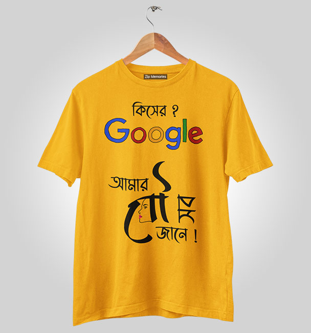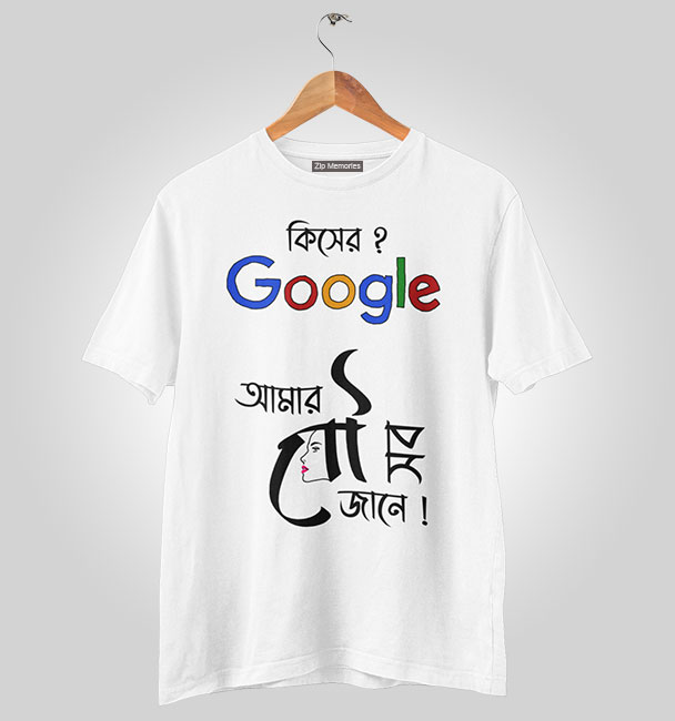 Google? ধুস! আসল ‘সার্চ ইঞ্জিন’ তো ঘরেই আছে; আমার বউ! এই মজার বাংলা quote টি-শার্ট পরে সবাইকে (আর নিজের বউকেও) বুঝিয়ে দিন যে, জীবনের সব উত্তর আছে ওনার কাছেই। স্টাইলিশ, আরামদায়ক আর সবার নজর কাড়বে, ১০০% গ্যারান্টি!