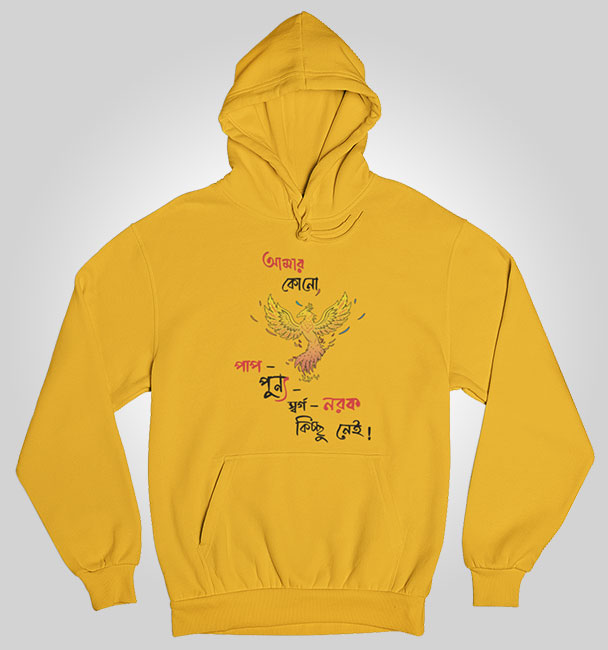 'লক্ষ্মীছাড়া' ব্যান্ডের গান 'ভীষণ ভালোবাসি'-এর লিরিক্স 'আমার কোনও পাপ-পুন্য স্বর্গ-নরক কিচ্ছু নেই!' আপনি শুধুই আপনার মতো। আমাদের এই Bangla Quote Hoodie একদম রেবেল মুড, ফুল অ্যাটিটিউড। ভালোবাসা হোক ভীষণ, আর স্টাইলটা হোক নির্ভীক!