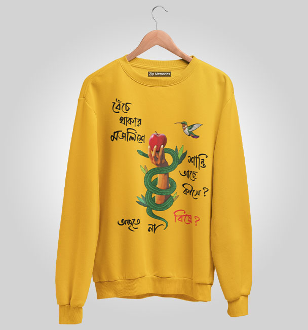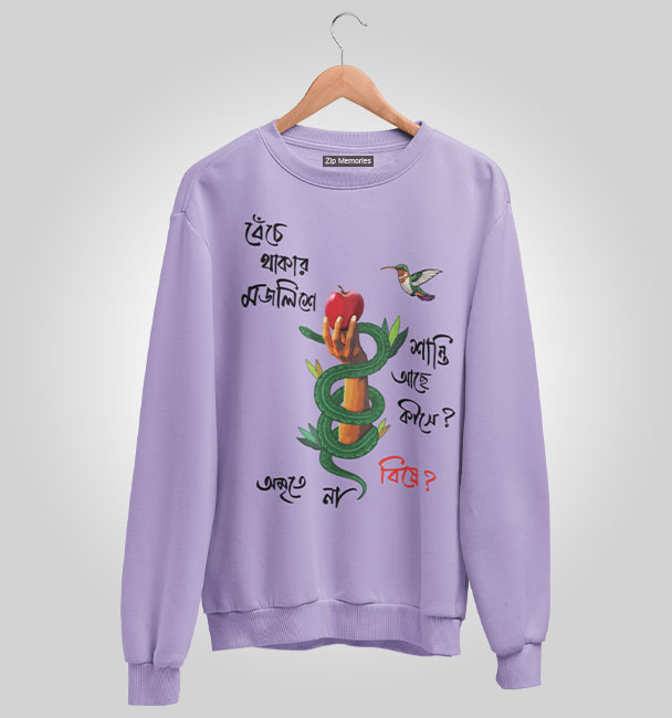 বেঁচে থাকার মজলিশে শান্তি আছে কীসে? অমৃতে না বিয়ে?' লাইফের টানাপড়েন, আড্ডা আর হালকা ফিলোজফি, সব একসঙ্গে পাবেন আমাদের এই Bangla Quote Sweatshirt এ। লক্ষ্মীছাড়ার মতো যারা সিরিয়াস প্রশ্নও কুল ভঙ্গিতে করে, তাদের জন্য পারফেক্ট। বেঁচে থাকো, ভাবতে থাকো, প্লাস স্টাইলেও থাকো!