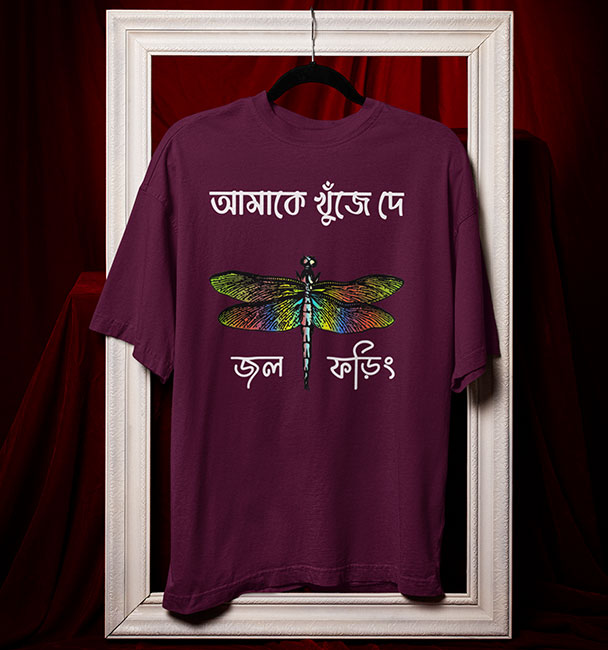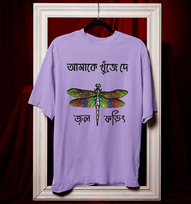 ‘আমাকে খুঁজে দে জল ফড়িং’; শিলাজিতের সেই মিষ্টি গান। সেই খামখেয়ালি, ভেজা-রেলগাড়ি-ছুঁয়ে-যাওয়া অনুভূতি এবার Oversized টি-শার্টে। যাঁরা হারিয়ে যেতে ভালবাসেন, আবার খুঁজে পেতেও চান; তাঁদের জন্যই এই কবিতার মতো ছবি। এই Bangla Oversized T-Shirt পরলেই মন উড়বে জলফড়িংয়ের ডানায়।