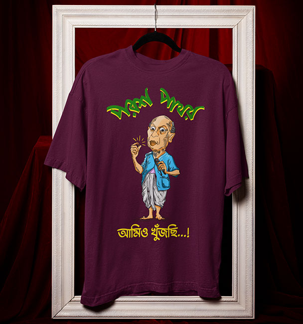 ‘পরশ পাথর’ সিনেমা দেখেননি এমন বাঙালি সিনেমাপ্রেমী বিরল। তুলসী চক্রবর্তীর কালজয়ী অভিনয়, সত্যজিতের রসবোধ আর আদি কলকাতার নস্টালজিয়া; সবই একসঙ্গে পাবেন এই Oversized টি-শার্টে। যাঁরা ক্লাসিক বাঙালিয়ানা ভালোবাসেন, তাদের জন্য এটা পারফেক্ট। #ParashPathar #SatyajitRay