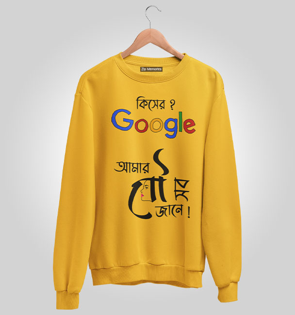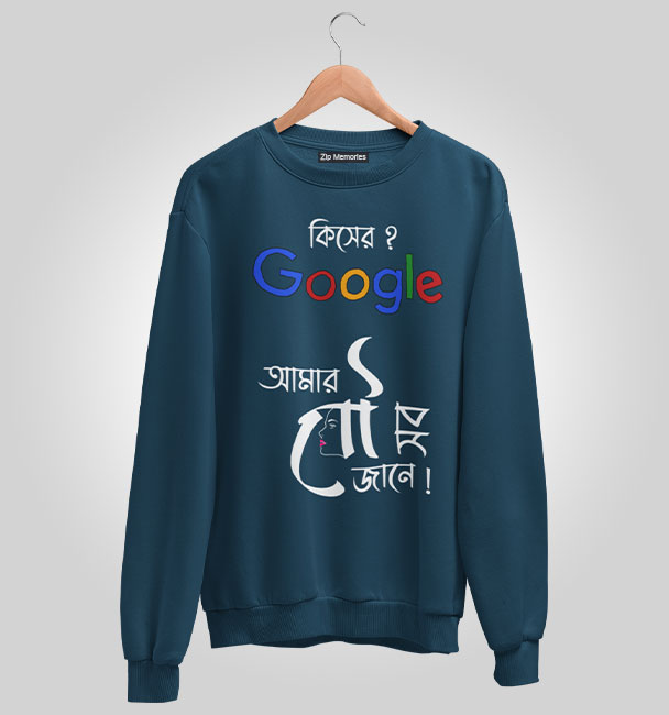 Google? ধুস! আসল ‘সার্চ ইঞ্জিন’ তো ঘরেই আছে; আমার বউ! এই মজার বাংলা quote Sweatshirt পরে সবাইকে (আর নিজের বউকেও) বুঝিয়ে দিন যে, জীবনের সব উত্তর আছে ওনার কাছেই। স্টাইলিশ, আরামদায়ক আর সবার নজর কাড়বে, ১০০% গ্যারান্টি!