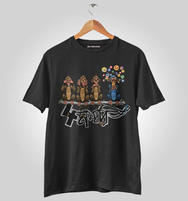 থ্রি ওয়াইজ মাঙ্কি তো আছেই… কিন্তু চতুর্থটা? সে ব্যস্ত সোশ্যাল মিডিয়া স্ক্রোলিংয়ে!