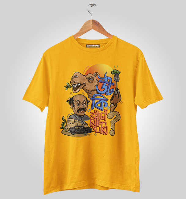 "উট কি কাঁটা বেছে খায়?" সোনার কেল্লা সিনেমায় লালমোহনবাবুর এই ডায়লগ কালজয়ী! সত্যজিতের বুদ্ধিদীপ্ত কমেডি, নস্টালজিয়া আর ফেলুদা প্রেমের মিশেল পাবেন এই টি-শার্টে। #FeludaForever #SatyajitRay